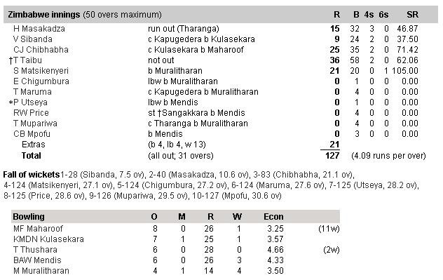 Look at the Zeros in zimbabwe Score Card. Incredible. I think this must be some kind of record, most consecutive zero's by position.