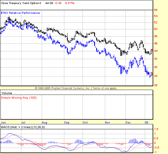 Also notice the spread widening in the 10 year and the 30 year yield. The blue one is the 10 year and the black one is the 30 year yield.