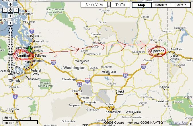 One of my fren is flying to Seattle next week. Her final destination is Spokane. The thing is she has to go by bus from Seattle to Spokane. And she'll arrive at night.