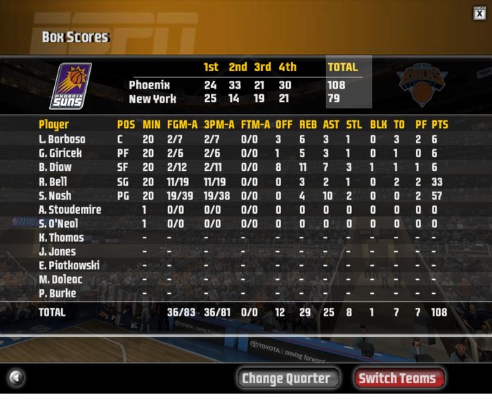 that's 99% right AAAA ...there's also a 2 point attempt by Diaw...except that all of the rest is 3 point...