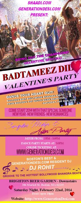 GenerationDesi.com, BostonDesiEvents.com & Friends present the Badtameez Dil Post Valentines Day Desi Party.