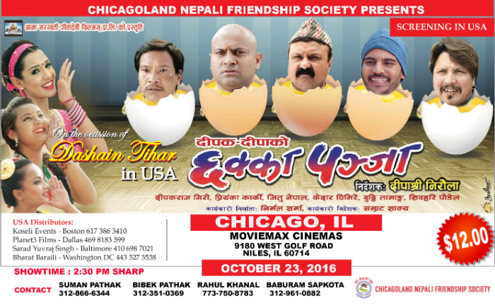 Chicagoland Nepali Friendship Society (CNFS) proudly presents blockbuster Nepali movie of the year CHAKKA PANJA at Movie Max Cinema, Niles, IL. Get your tickets now and come and enjoy the movie with your friends and family. For advanced tickets please contact :