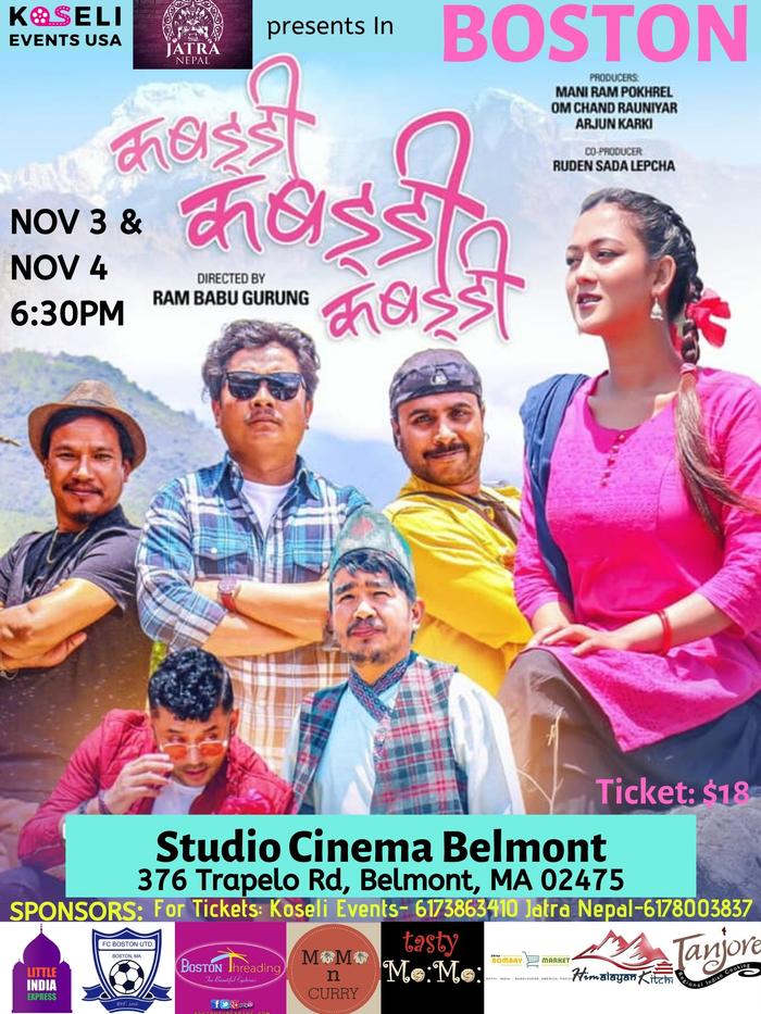 The Wait is Over....Blockbuster ЁЯОм рдХрдмрдбреНрдбреА рдХрдмрдбреНрдбреА рдХрдмрдбреНрдбреА In BOSTON. NOV3 and NOV4 @ 6:30PM @ Studio Cinema Belmont,MA . #KoseliEvents #JatraNepal presentation.