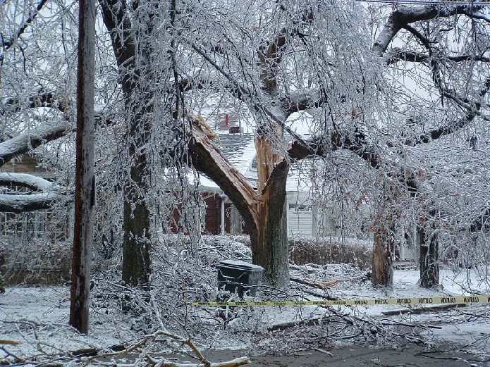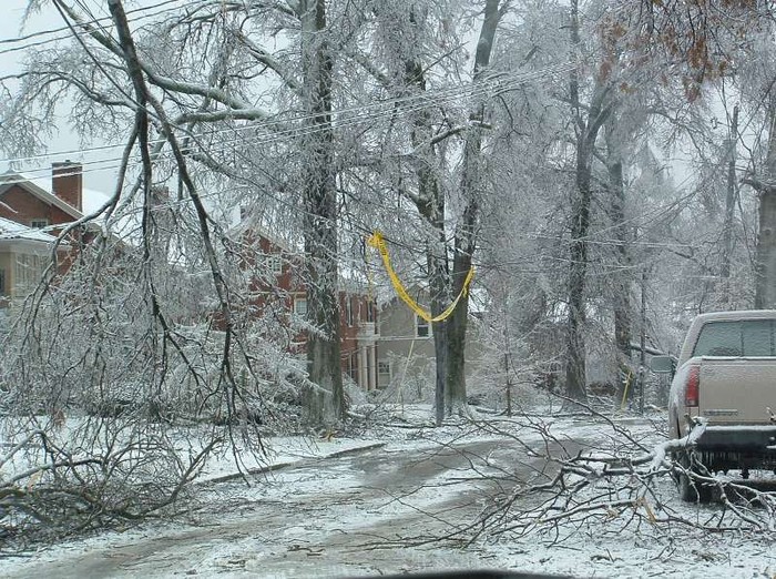 There was no power most of the way. One needed to drive extremely carefully, as it was not only pitch dark but also the road was slippery and often blocked by trees. Traffic lights needed to be treated as stop signs. As we exited the car in front of his house, it looked like a scene from a horror movie. The ground looked whitish with snow and the tree branches looked as if they were made of glass. Except once during a lightening it looked pitch dark elsewhere. There were also sounds from collapsing trees. The mayor of the city declared a state of emergency.
