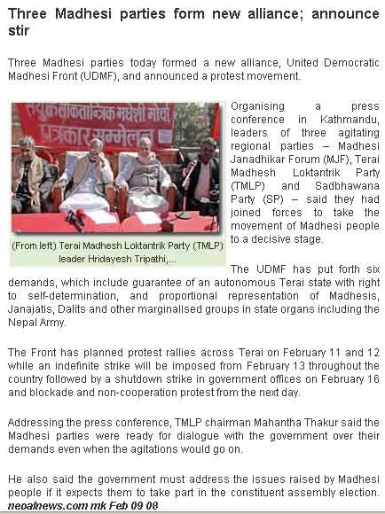 demands, leader of the newly-formed United Madhesi Democratic Front (UMDF),